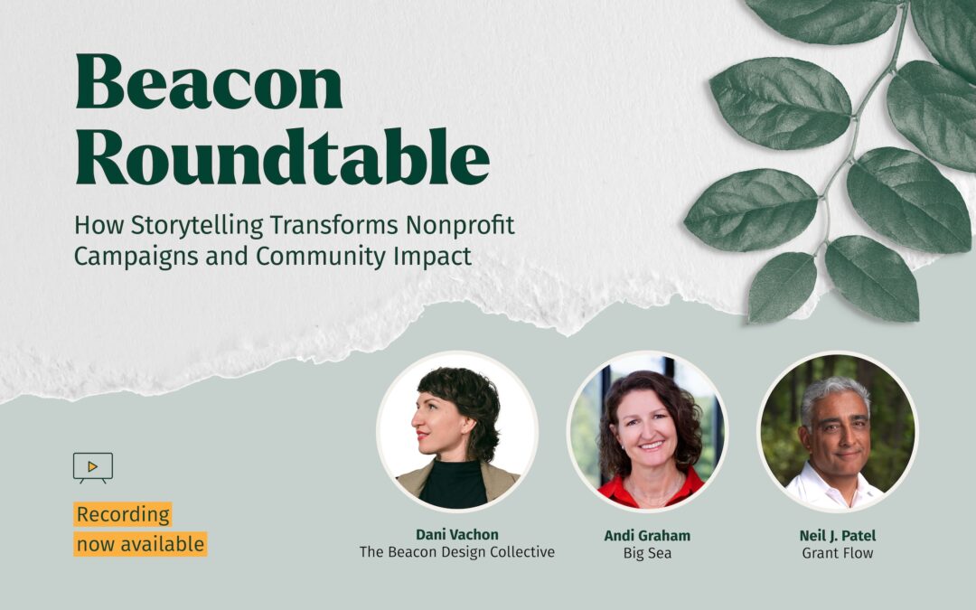 In a world full of digital noise, an effective story is still the best way for a nonprofit to connect with people. Recently, we hosted a roundtable with three experts: Dani Vachon from Beacon Design Collective, Andi Graham from Big Sea, and Neil Patel from Grant Flow. They discussed how using the right stories can help nonprofits build trust and get more support.